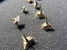 Down the hall, to the office, sitting down at his computer, and I get a goathead in the tender spot right between my foot and my pinkie toe.