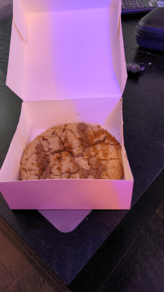 I also had a grocery delivery today.. and for no reason on this earth, Heather remembered that I like cookie butter… and for no reason, she stopped into Crumbl and got me a cookie butter cookie. Just because.